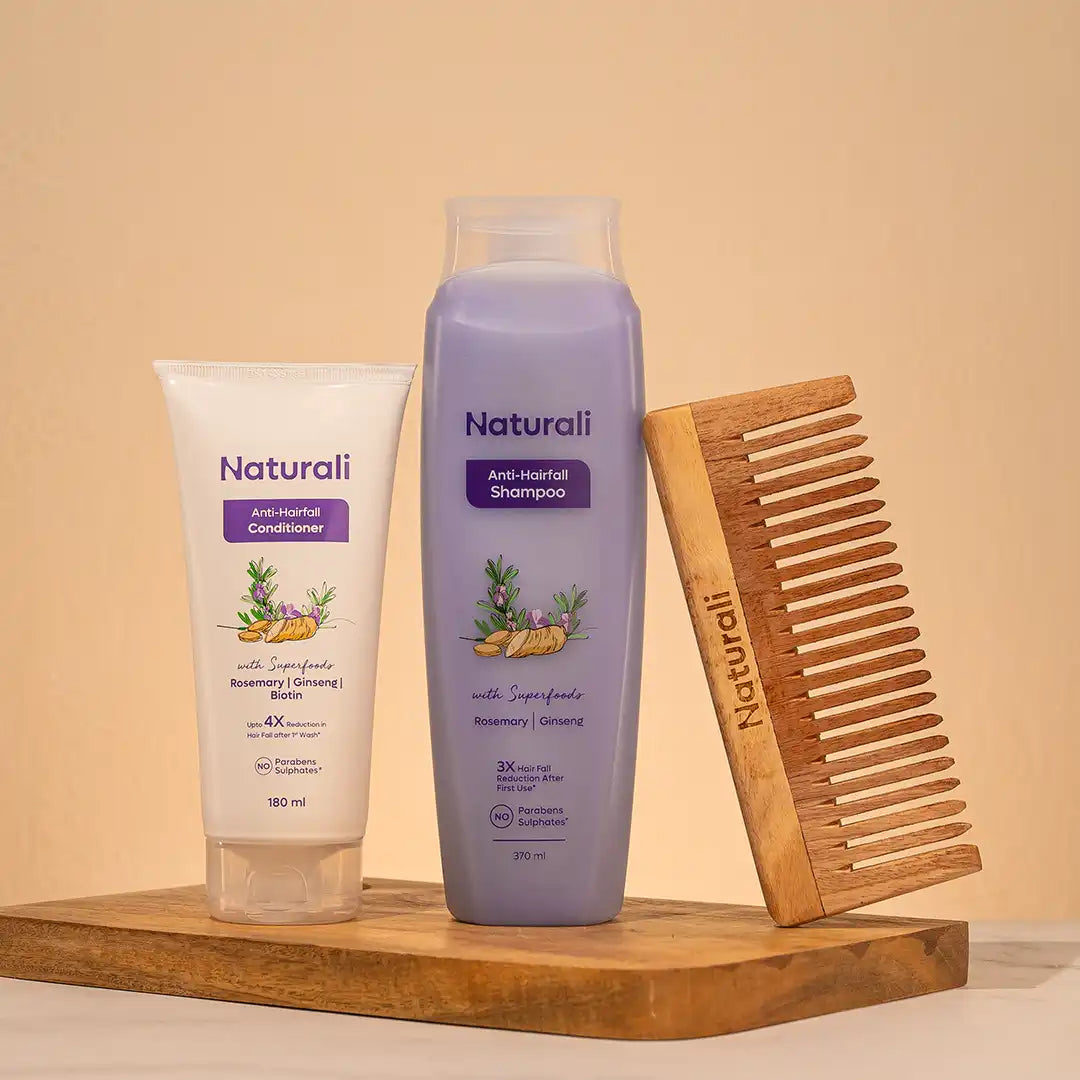 Naturali Anti-Hairfall Shampoo + Hairfall Arrest Conditioner + Wooden Neem Comb