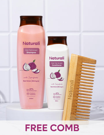 Naturali Hairfall Arrest Shampoo + Hairfall Arrest Conditioner + Organic Wooden Neem Comb