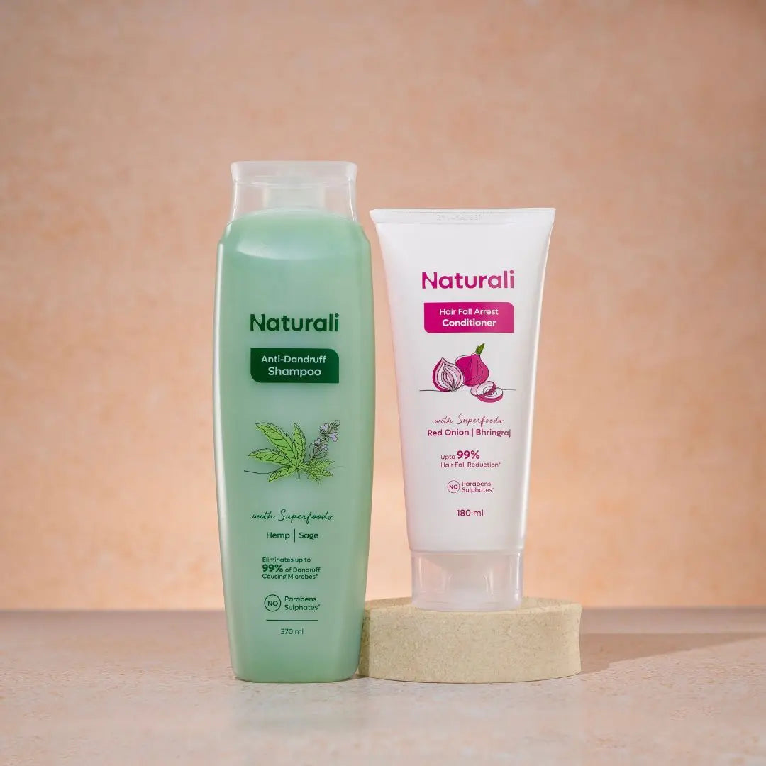 Naturali Anti-Dandruff Shampoo + Hairfall Arrest Conditioner + Wooden Neem Comb