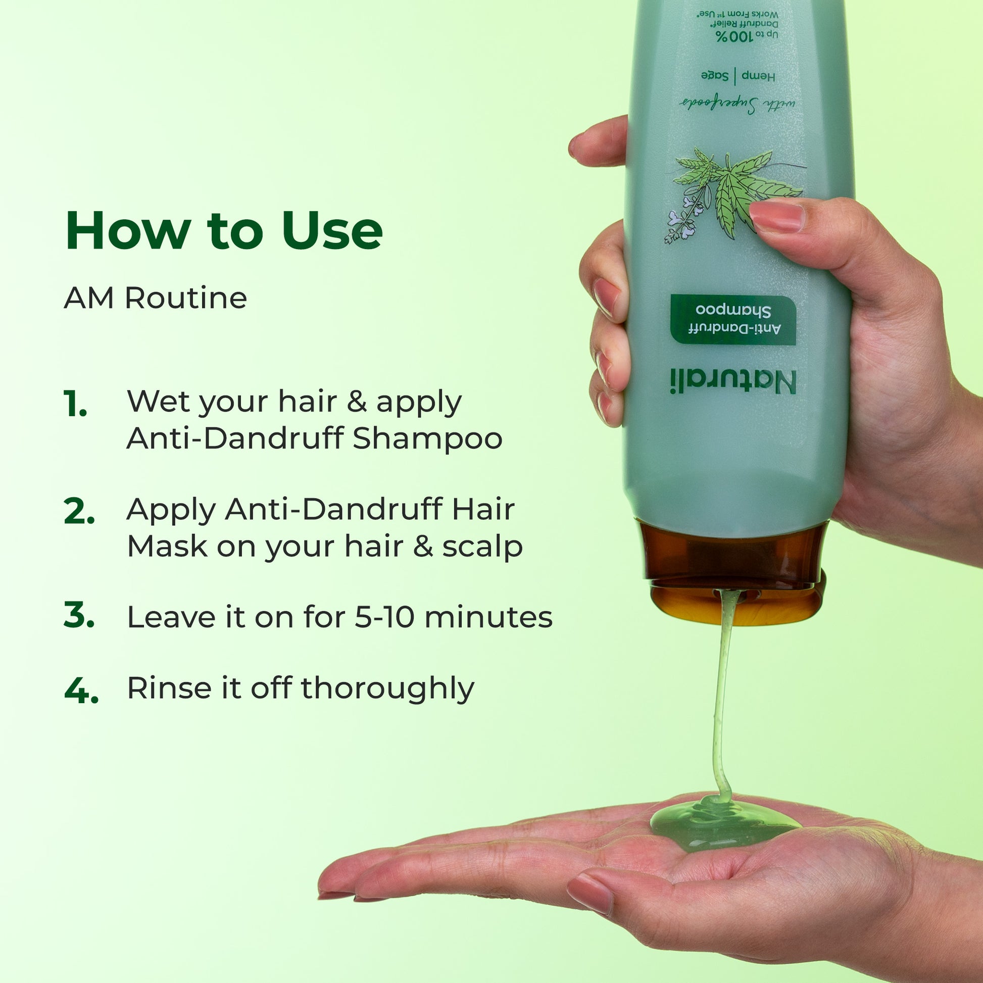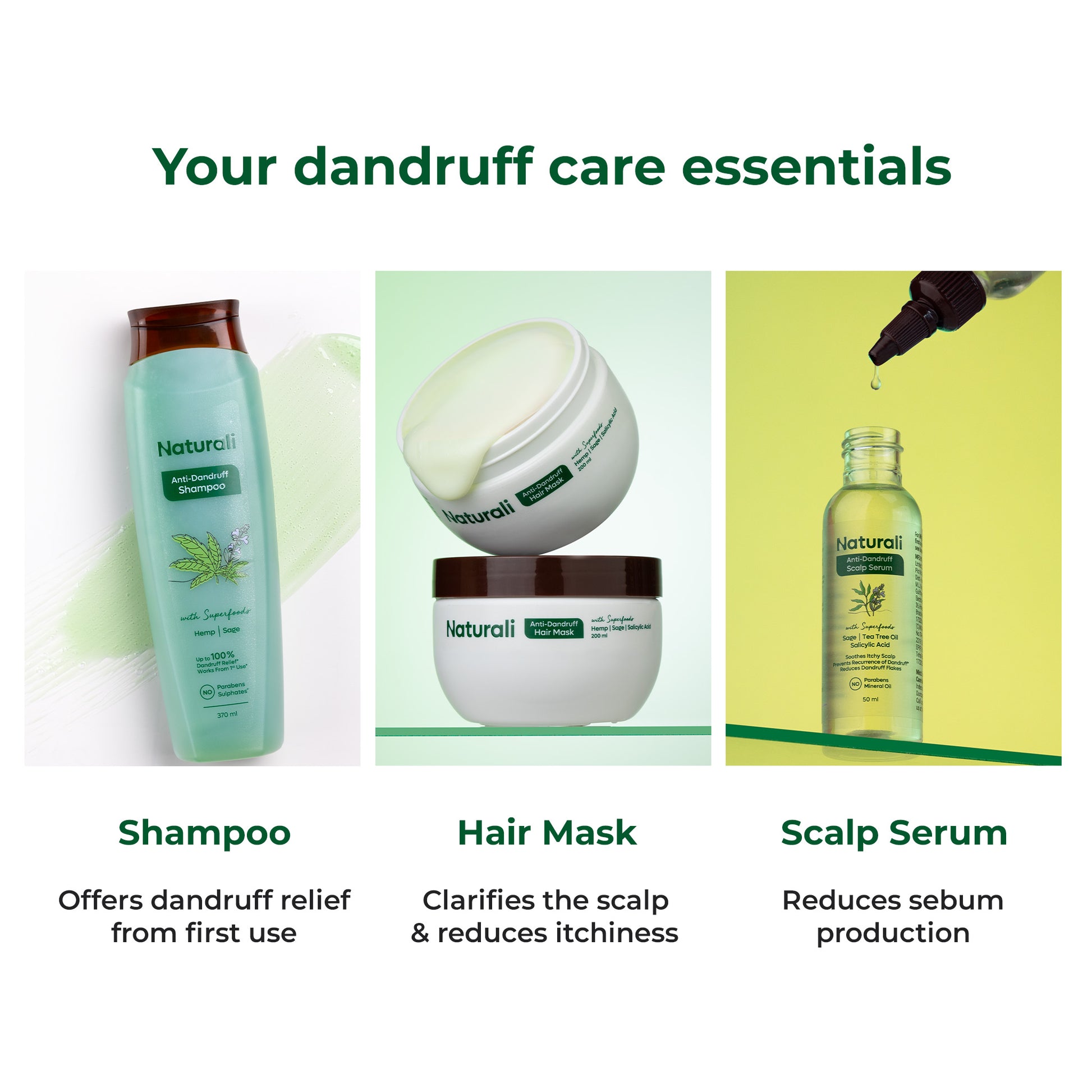 Naturali Anti-Dandruff Total Care Routine - Shampoo + Hair Mask + Scalp Serum + Scalp Massager (Hemp Range)