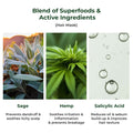 Known for its hair care benefits, sage leaves are homegrown & sourced to create remedies for multiple hair concerns like dandruff, hair loss, greying hair, and hair texture. When it comes to treating dandruff-prone hair, sage leaf extract helps to soothe & purify irritated skin, control a dry, itchy scalp, and enhance hair growth by providing the necessary nutrition to hair follicles.