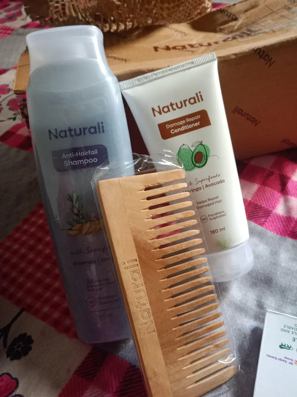 Naturali Anti-Hairfall Shampoo + Damage Repair Conditioner + Wooden Neem Comb