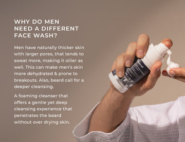 Men's skin with larger pores sweats more and also tends to be oilier; this makes their skin more dehydrated & prone to acne breakouts. This requires a thorough cleanse with the Clarifying Foaming Face Wash for men that does more than just cleansing. It gently exfoliates & deeply cleanses skin under the beard as well. This face wash for men is crafted to remove & control excess oil, soothe skin & prevent breakouts. Powered by Green Tea, Willow Bark & Glycolic Acid; these ingredients work together to effectively cleanse, exfoliate & soothe skin.