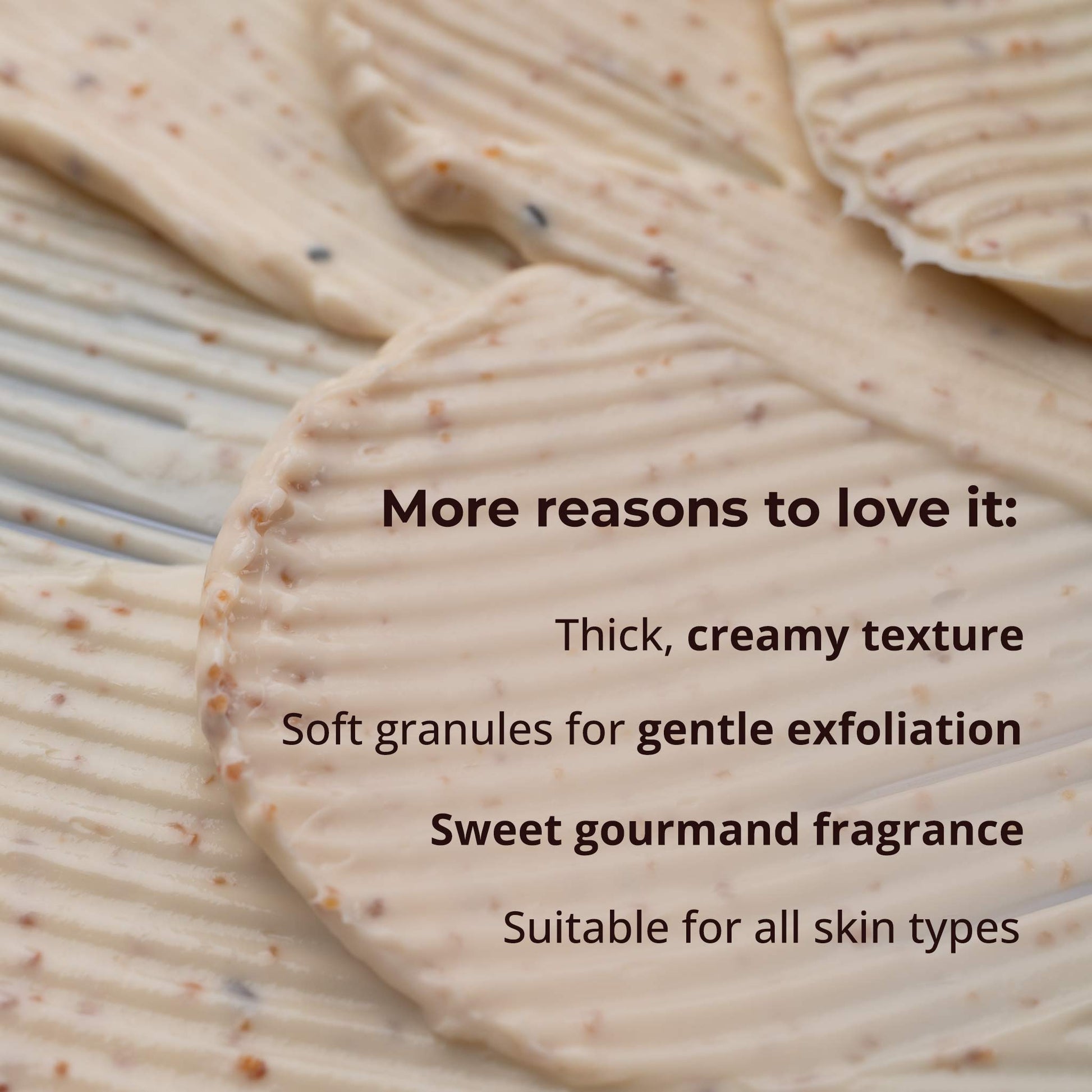 The smooth, creamy texture of this face scrub contains soft granules of walnut shell powder that offer mild exfoliation. The sweet gourmand fragrance helps elevate the overall experience. This face scrub is free of harmful toxins like Parabens and Mineral Oil and is also cruelty-free.