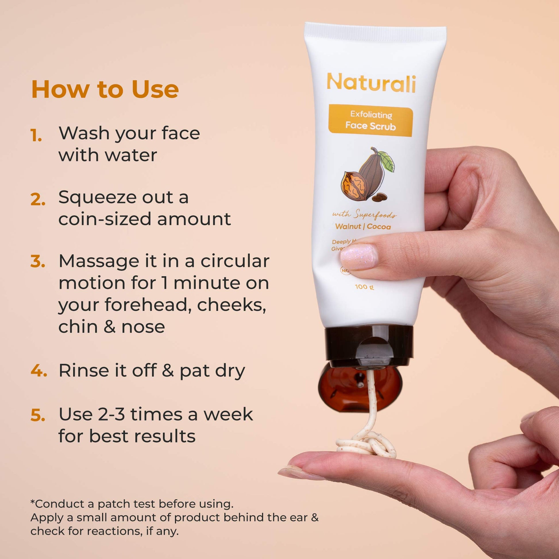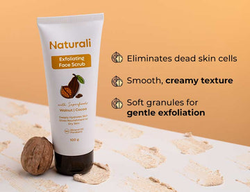 Get skin that looks clear & feels nourished with Naturali Walnut & Cocoa Exfoliating Face Scrub.