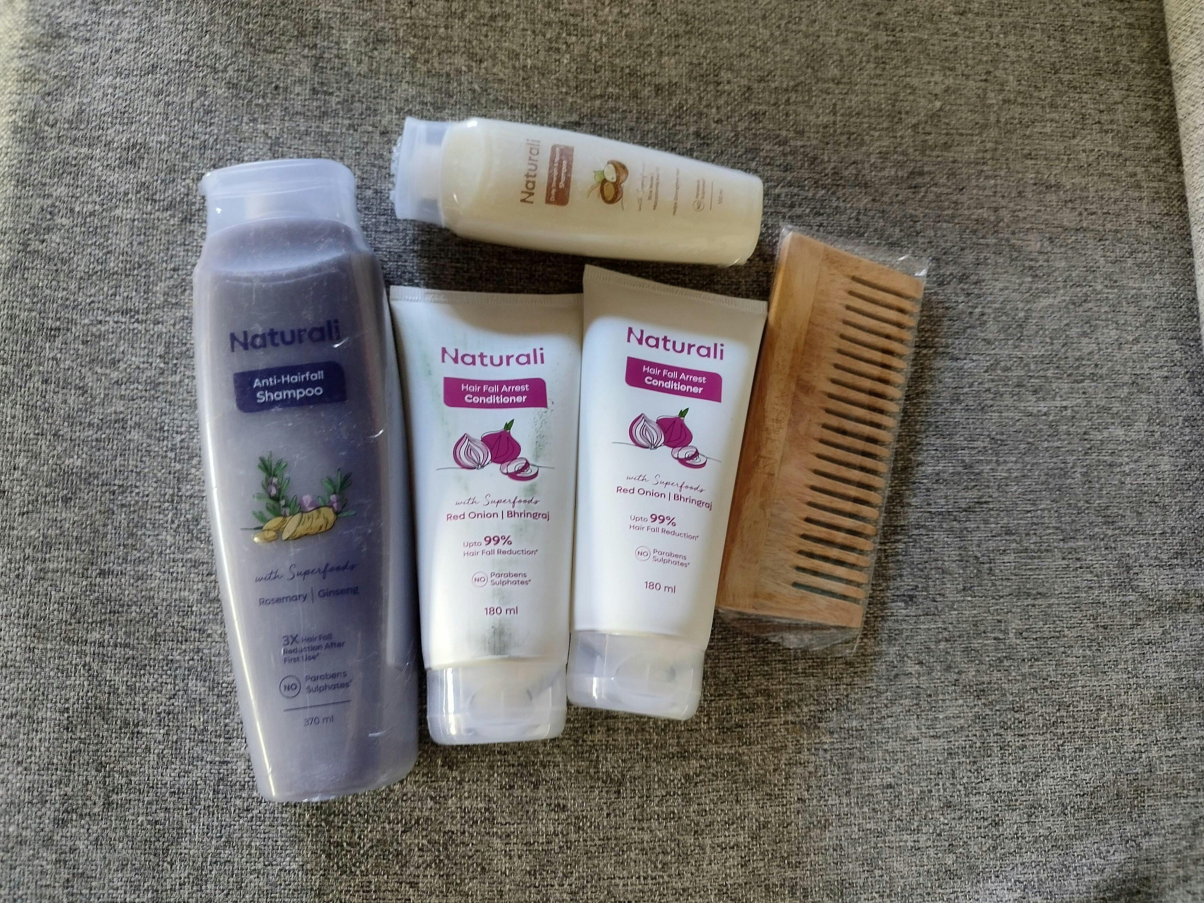 The smell was good and it suits for my hair type.But since I have normal to oily scalp it's not suitable for my scalps.When I wash my hair, my hair still falls but after washing and drying my hair it falls less comparing to the time before I use the anti-hairfall shampoo and conditioner.I haven't use the Rice water shampoo. I also like the wooden comb it's so good