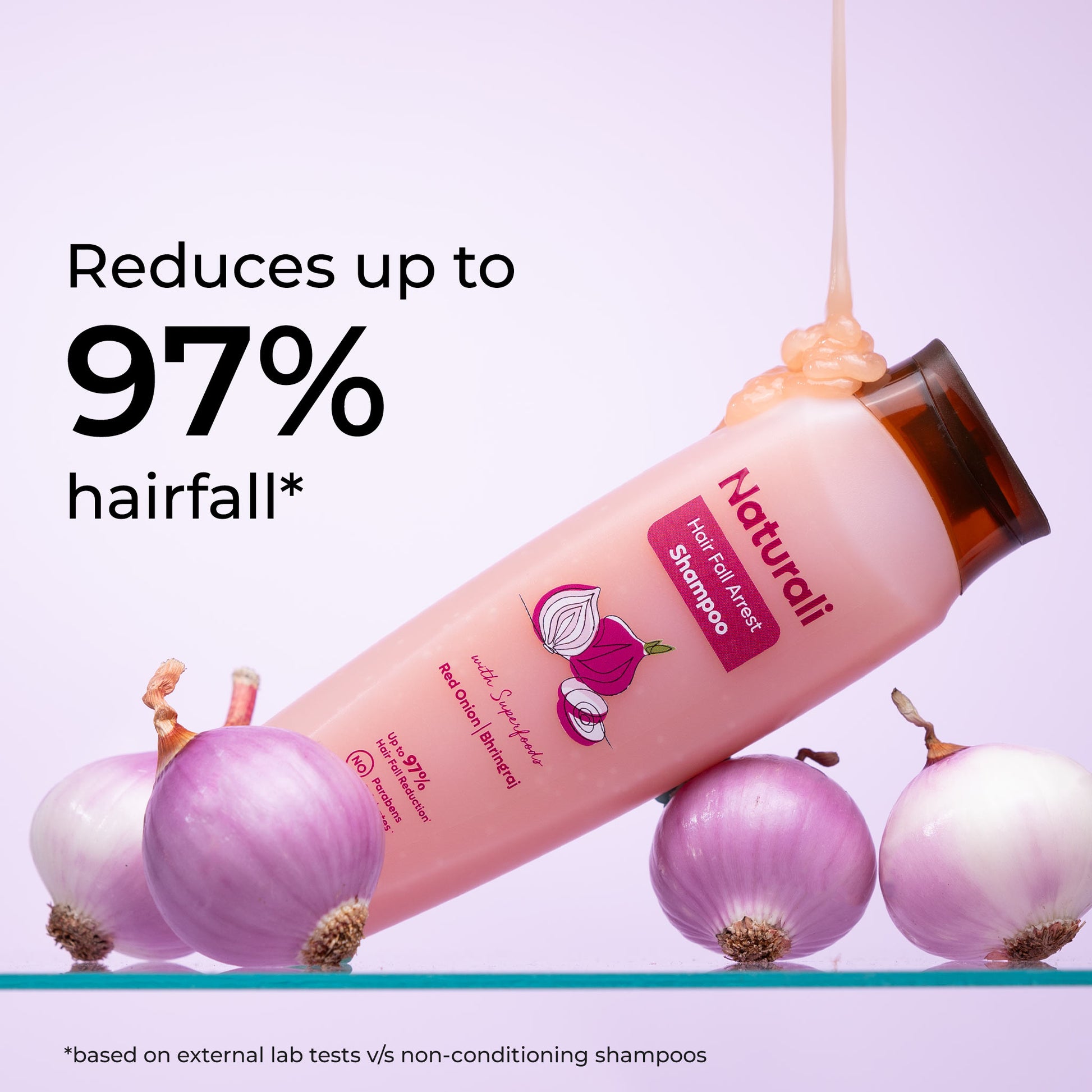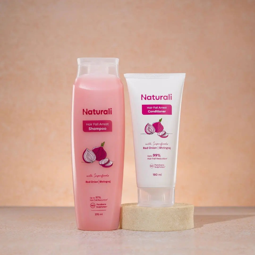 Hairfall Arrest Conditioner This conditioner for hairfall packs the power of Red Onion & Bhringraj to strengthen hair & reduce hairfall. This paraben and sulphate-free conditioner helps combat dryness & frizz, detangle hair and makes it easier to manage.