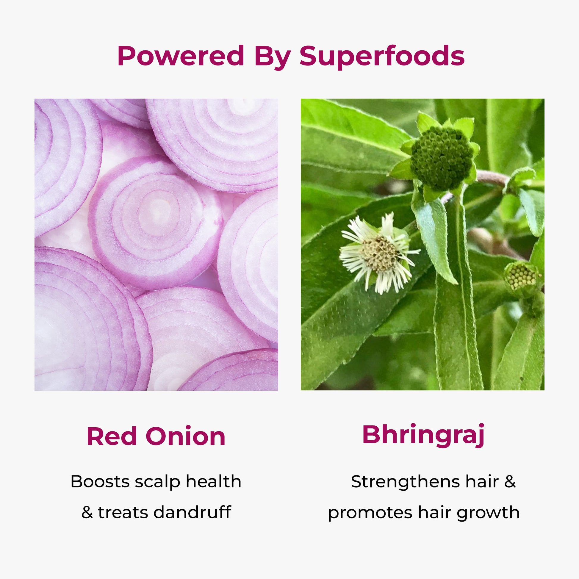 When it comes to hair care, nothing has gained more popularity than your very own Red Onion, and for the right reasons. It reduces hair fall and prevents premature greying of hair. It’s infused with Organosulfur compounds that help in treating dandruff and boosting scalp health. When applied for 6 weeks, Red Onion also helps with hair regrowth.