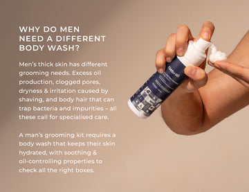 Excess oil production, dryness caused by shaving, and body hair that can trap bacteria, men's skin has different grooming needs. Men need a top-to-toe solution that combats all these problems in one go, like the Hydrating Foaming Body Wash for men. Deeply cleanses & gently exfoliates, this body wash for men effectively eliminates impurities and soothes skin while helping maintain skin's natural moisture content. This body wash for men is powered by the benefits of Green Tea, which helps soothe inflamed skin, Shea Butter that promotes skin healing, and Hyaluronic Acid that helps skin retain moisture. Together, these work to revitalise skin & offer a fresh feel after every shower.