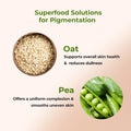 Oat extract soothes and protects the skin barrier Pea extract brightens and supports collagen and Alpha Arbutin reduces dark spots.