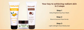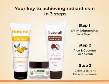 Softer, smoother skin is just one wash away with Naturali Radiant Glow Face Scrub. Made with gentle, non-abrasive Rice Beads and the hydrating goodness of Coconut Oil, this face scrub exfoliates your skin off of dead skin cells and blackheads and improves your overall skin texture. It also helps restore lost moisture leaving your skin feeling nourished after every use.