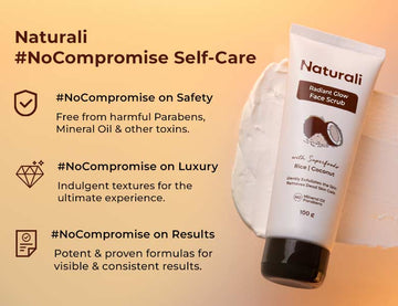 Get skin that looks nourished & feels super smooth with every use of the Naturali Rice & Coconut Radiant Glow Face Scrub.