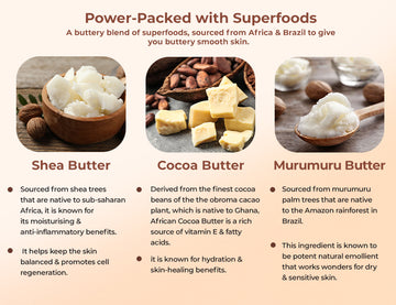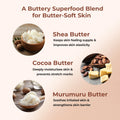 Made with a blend of three butters—Shea, Cocoa, and Murumuru Butter work together to deeply hydrate and nourish skin while offering a gentle, thorough cleansing experience. Shea Butter keeps skin feeling supple and improves skin elasticity. Cocoa Butter deeply moisturises skin and prevents stretch marks. Murumuru Butter soothes sensitive skin while helping strengthen the skin barrier.