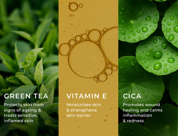 Men's skin is naturally thicker and tends to be oilier too; but it is also prone to dryness & irritation due to regular shaving. That's why you need a moisturiser that effectively hydrates & soothes skin like this Soothing Face Moisturiser for men. It offers instant hydration and helps balance the skin's oil & moisture content. Its soothing properties help calm the 5 signs of post-shave irritation - burning, redness, dry & itchy skin, micro cuts, and tightness. Made with Green Tea, Cica & Vitamin E, this moisturiser for men hydrates & calms skin while strengthening the skin barrier.