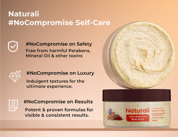 Naturali Radiant Glow Body Scrub smooths skin and enhances natural radiance.