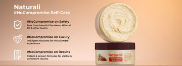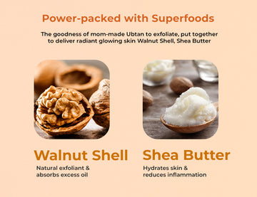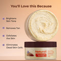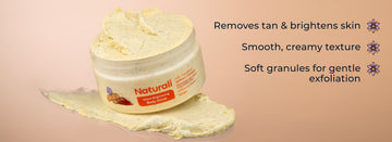 Scrub away dullness and make way for brighter skin with the Naturali Ubtan Brightening Body Scrub. Infused with the goodness of the original all-natural ubtan recipe, which includes Saffron, Turmeric, Sandalwood & Chickpeas. This ubtan recipe is backed by the natural exfoliating benefits of Walnut Shell Powder and the nourishing benefits of Shea Butter. Together these ingredients help reveal your skin's natural radiance by effectively removing dead skin cells and diminishing the appearance of tan, leaving your skin looking bright & refreshed. Suitable for all skin types, it not only exfoliates but also enhances your skin's texture & appearance.