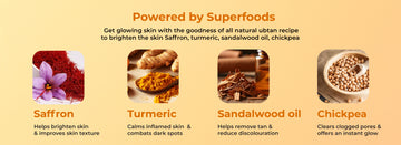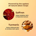 It combines saffron extract for brightening turmeric extract for glow and sugar crystals for gentle exfoliation.