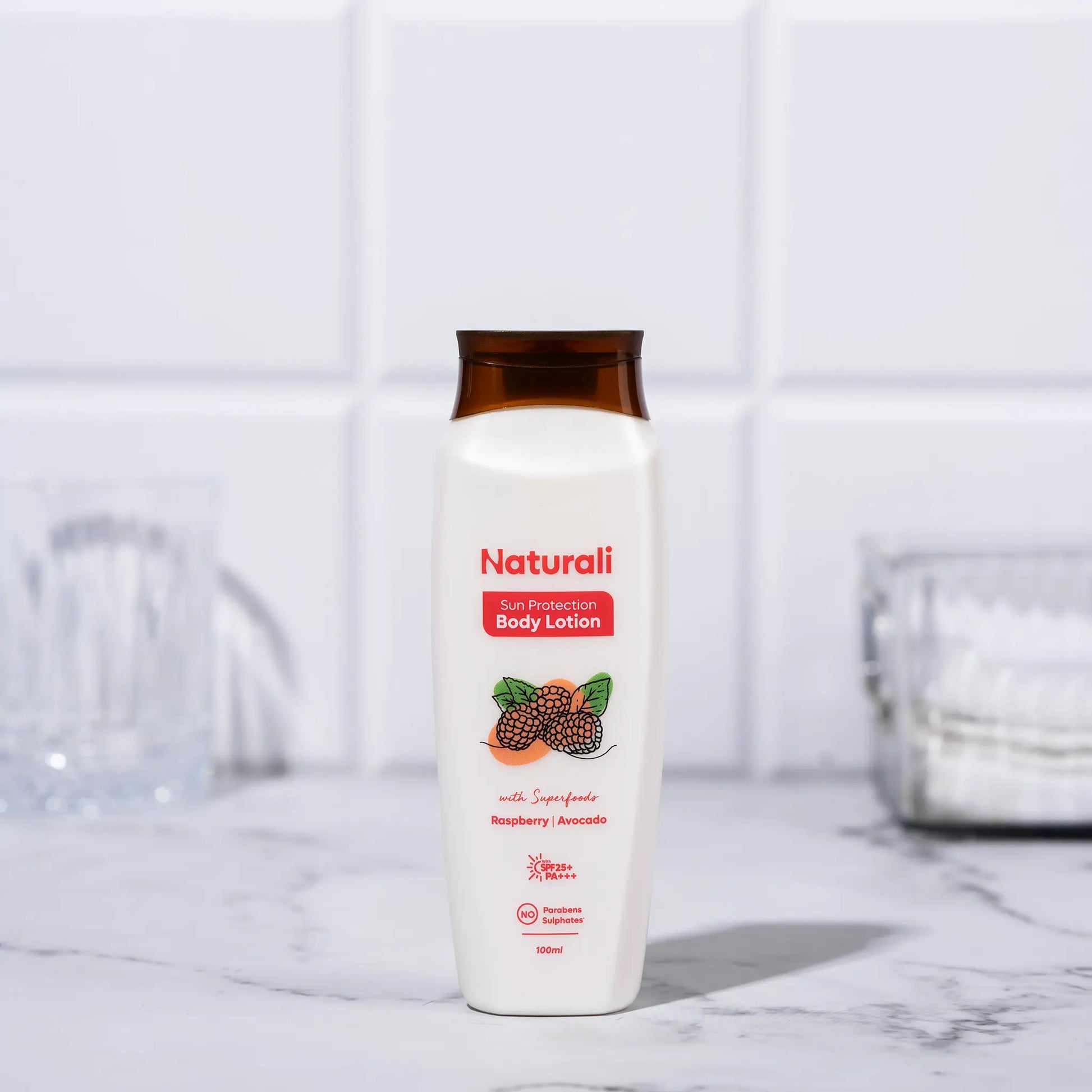 Naturali Sun Protection Body Lotion with SPF25 PA+++ infused with Raspberry and Avocado